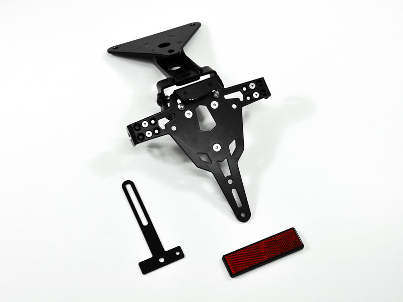 NOTEStainless steel, adjustable, no mods - Included: LED numberplate light, reflector, aftermarket blinker supports - Separately: OEM blinker support (check MC model for availability), numberplate light Posi-Tap connector 44100004 (3 needed)