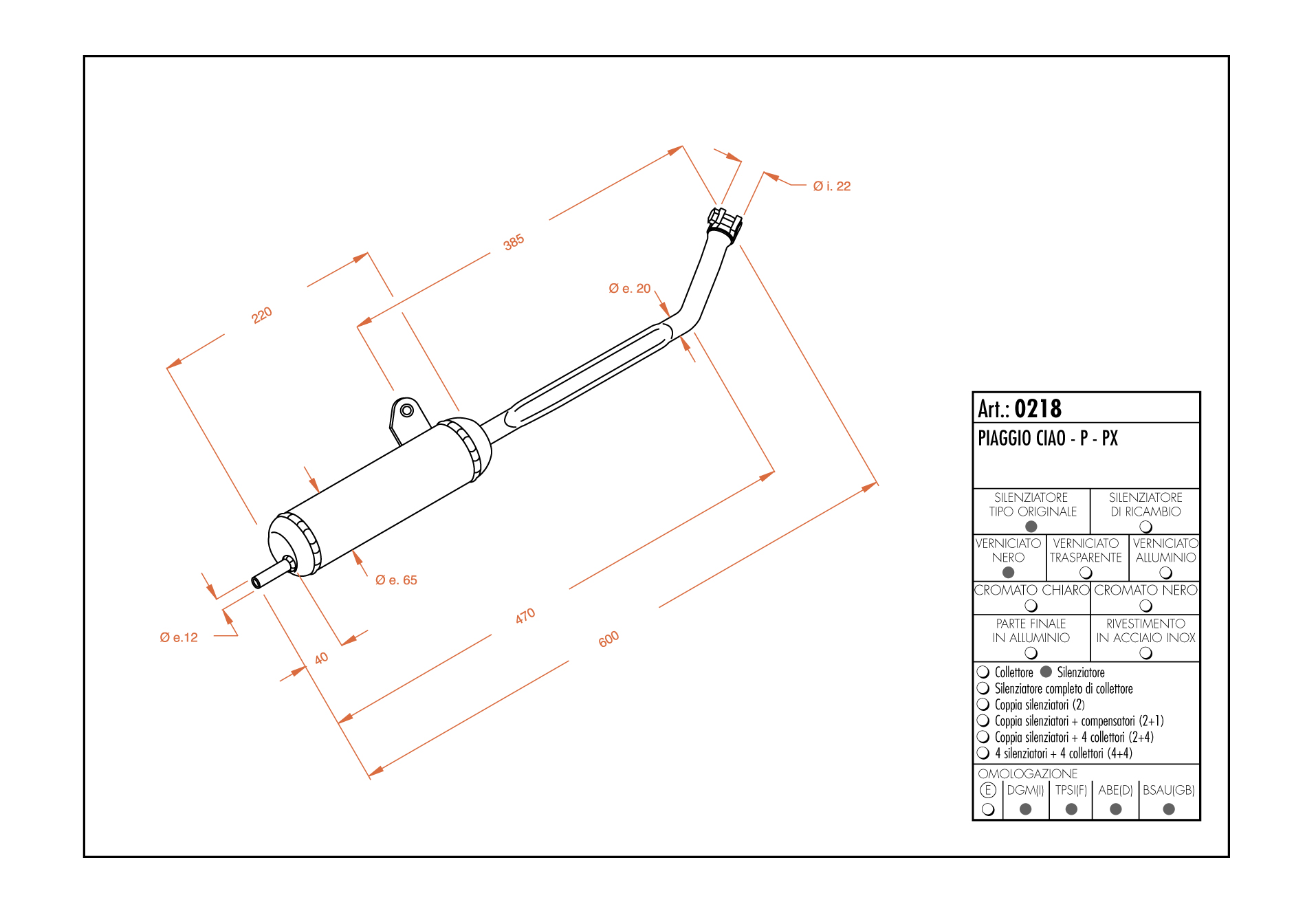 NOTESITO PIAGGIO CIAO - P - PX - completo di raccordo e attacchi per il modello indicato