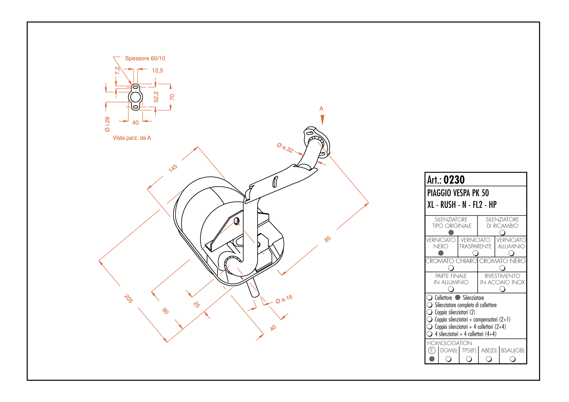 - NOTESITO VESPA PK 50-XL-RUSH-HP-N - completo di raccordo e attacchi per il modello indicatoTutti i prezzi sono in € iva esclusa.