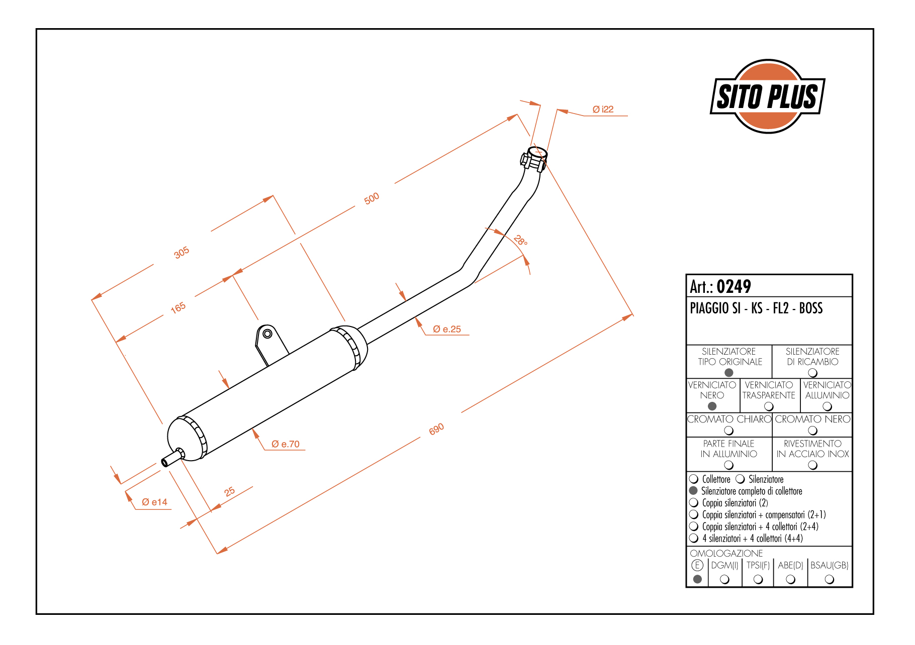 NOTESITOPLUS PIAGGIO SI-KS-BOSS - completo di raccordo e attacchi per il modello indicato