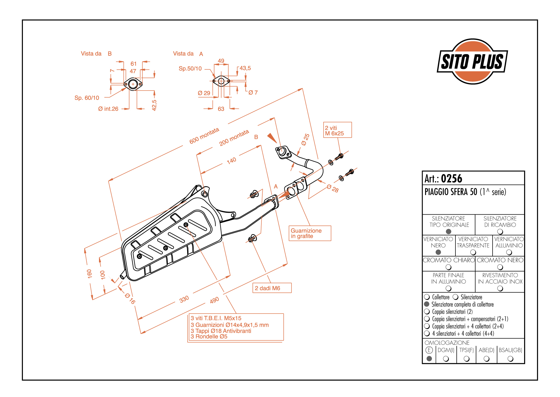 1991 - 1993 LEOVINCESilenziatore SITO (C) SITO PLUS - Silenziatore con collettore LE0256 117,00 € NOTESITOPLUS SFERA 50 (1' serie) - completo di raccordo e attacchi per il modello indicato